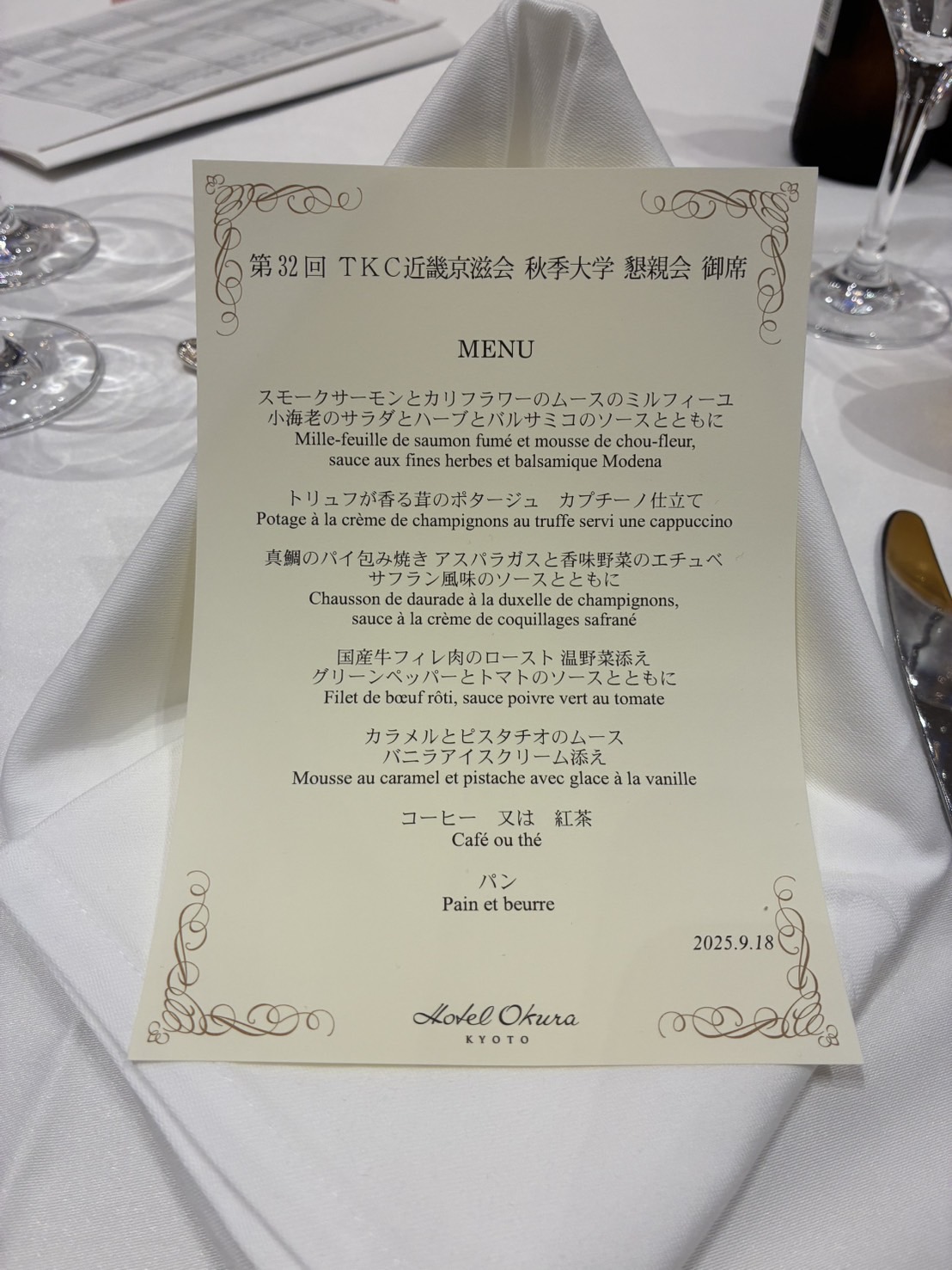 去る9月18日、ホテルオークラ京都にて「TKC近畿京滋会 第32回秋季大学」が開催されました。